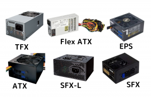 PC電源は、PC構造の規格ATX(Advanced Technology eXtended)をもとに、ATX電源、EPS電源、SFX電源、FlexATX電源、TFX電源など、PCケースの大きさやマザーボードの規格に合わせたものがあり、適切なユニットを選ぶ必要があります。