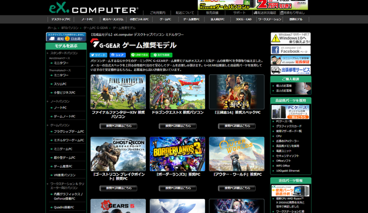 ゲーミングパソコンだけでなく、クリエイターパソコンや、ノート型のパソコンも揃っています。