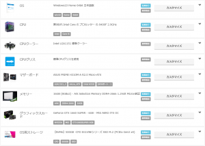 他のメーカーよりも選択肢が多いので、オンリーワンなパソコンを組みたい方におすすめ。