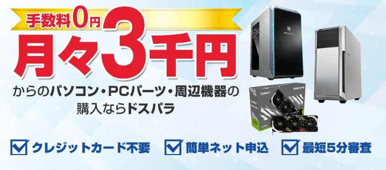 現在ドスパラでは、最大20回払いまでの分割手数料が無料!