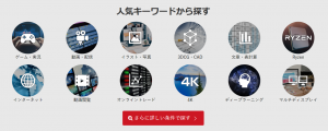 たとえば、トップページには「ゲーム実況」「動画・配信」「3DCG・CAD」など、利用の目的別にアイコンが並んでいます。