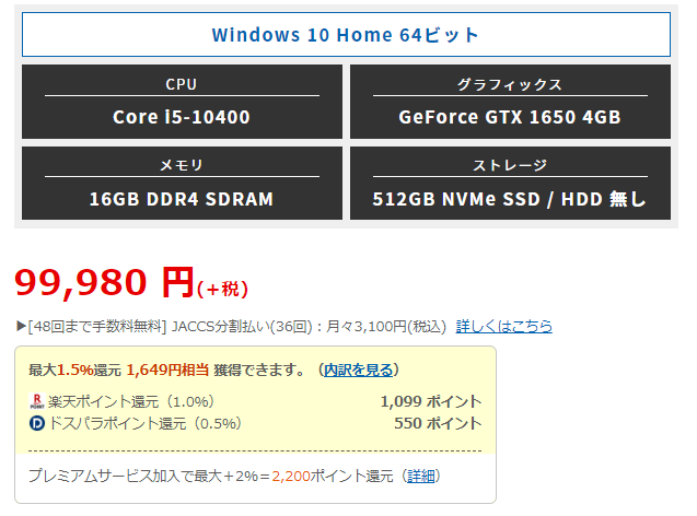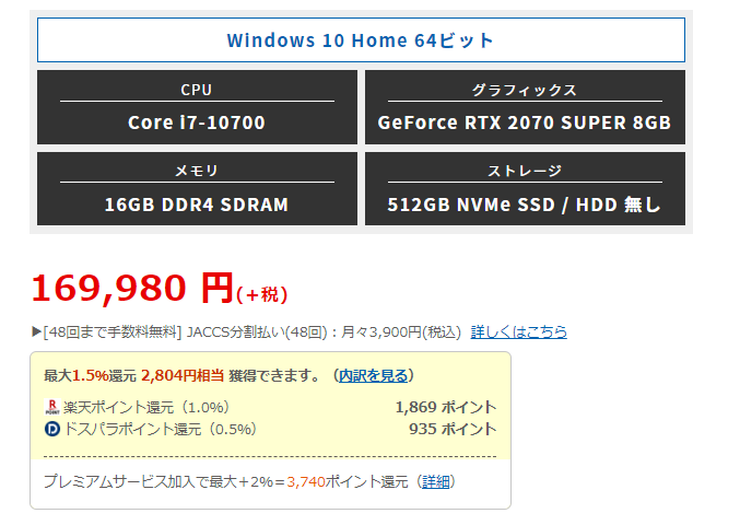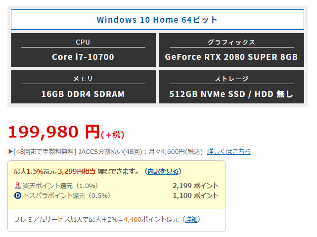 ※旧モデルのガレリアと一見同じ料金に見えますが、新モデルの方はHDDが標準で搭載されていません。