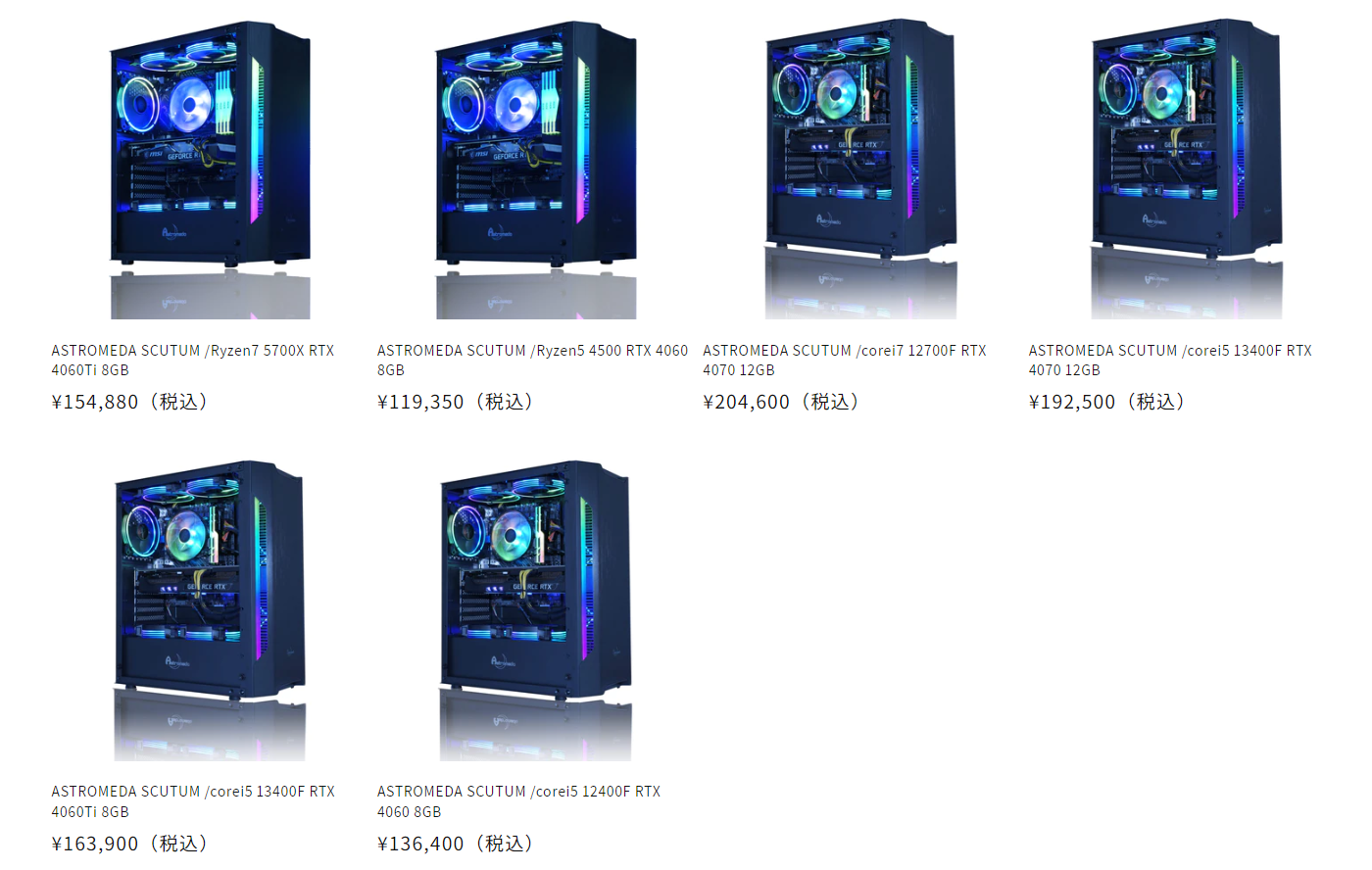 マイニングベースはゲーミングPCとして「Astromeda」シリーズを発売しています。