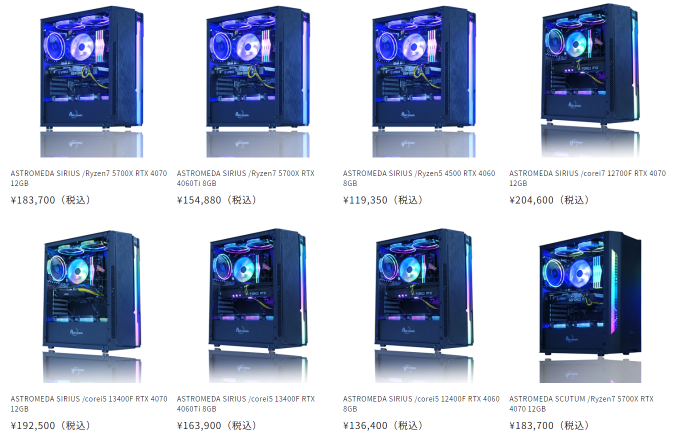 マイニングベースはゲーミングPCとして「Astromeda」シリーズを発売しています。