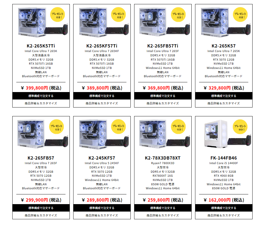 最近では、上記で紹介したBTOショップ全てで開催されているキャンペーンなども頻繁に行われています。