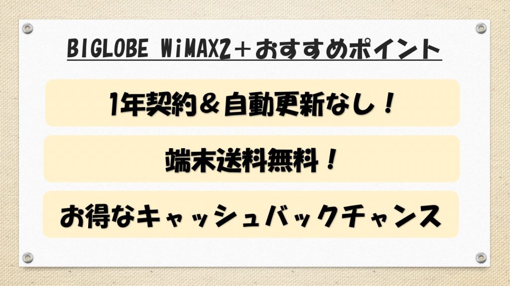 たとえば、BIGLOBE WiMAXなら1年間&自動更新なしですが、カシモWiMAXは3年間&自動更新。
