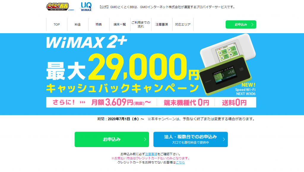 GMOとくとくBB WiMAX2+ 月額3,609円~